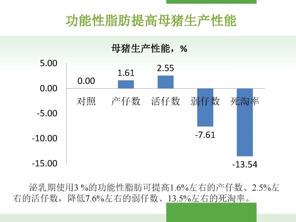 ——特有的的大豆磷脂:构成了细胞膜、核膜、线粒体膜,是细胞更新所必须;是血浆脂蛋白的组分,促进脂肪在血液中的运输;乳化脂肪,促进母猪对营养物质的消化吸收;
